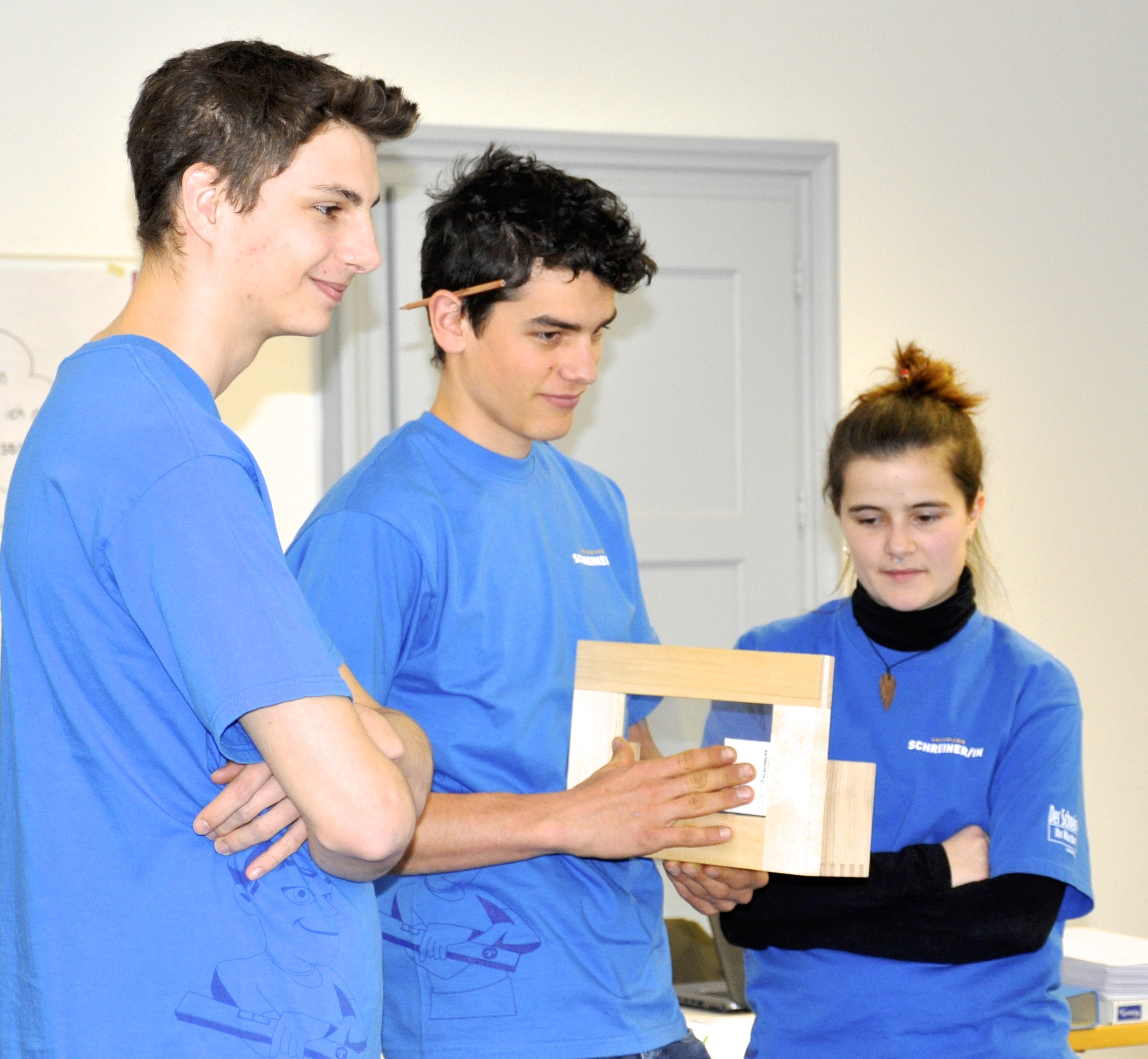 Ausgebildete Jobcaster werden an Tagen der offenen Tür, Berufsmessen oder Auftritten an Volksschulen eingesetzt, um Schülerinnen und Schüler für den Schreinerberuf zu begeistern.