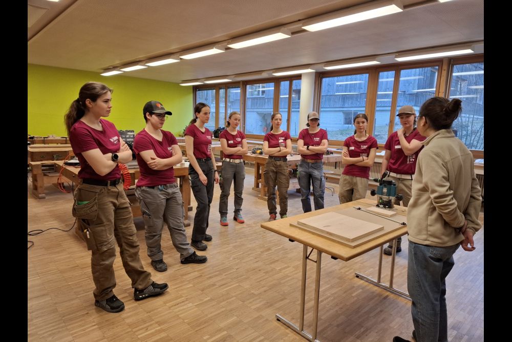 Unter der fachkundigen Leitung der WorldSkills-Teilnehmenden Sven Bürki und Samanta Kämpf verbrachten die angehenden Schreinerinnen spannende Tage. Neben der Herstellung eines Möbelstücks standen das Knüpfen neuer Kontakte, der Austausch von Ideen und die Diskussion über berufliche Entwicklungsmöglichkeiten im Vordergrund.
