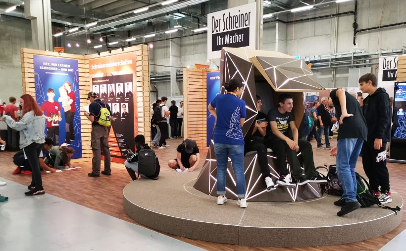 Nachwuchsgewinnung. Der Verband Schweizerischer Schreinermeister und Möbelfabrikanten hat die Besucherinnen und Besucher an den Swiss Skills in Bern mit einem tollen Auftritt für den Schreinerberuf begeistert. Wer wollte, durfte unter Aufsicht selbst Hand anlegen.