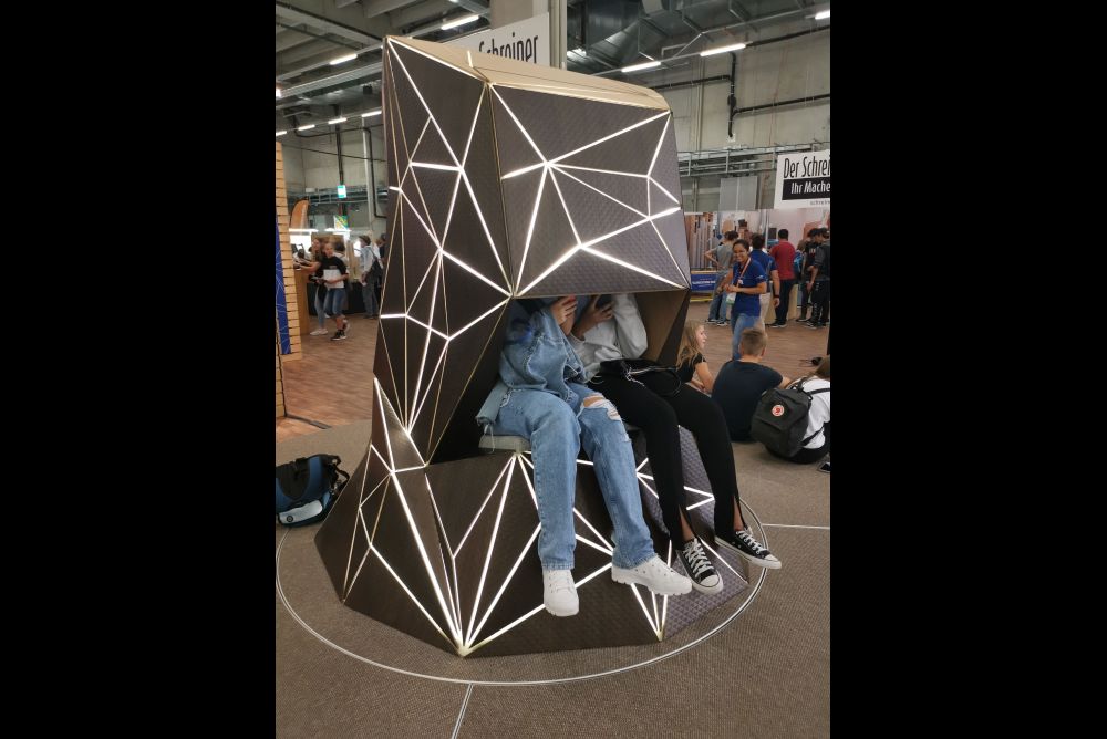 Der Pod Chair lockt viele Neugierige an den Stand der Schreinerinnen und Schreiner. Bild: Nicole D'Orazio