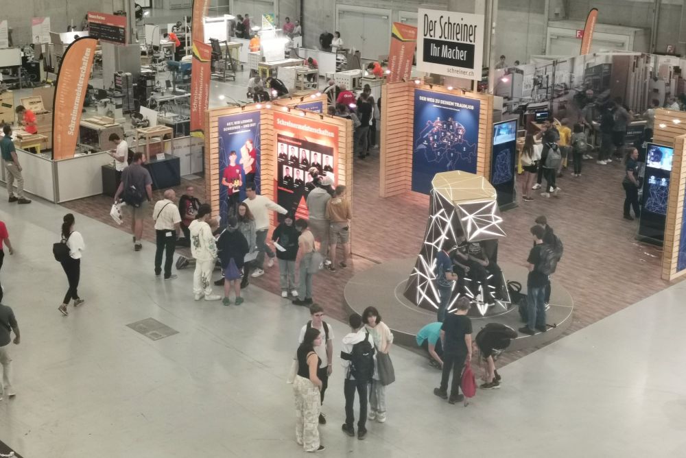 Neben den vielen Informationen über Aus- und Weiterbildungen konnten die Besucherinnen und Besucher gleich nebenan die Schreinernationalmannschaft beim Kampf um die Schweizermeistertitel der Kategorien Möbel und Massivholz bestaunen.