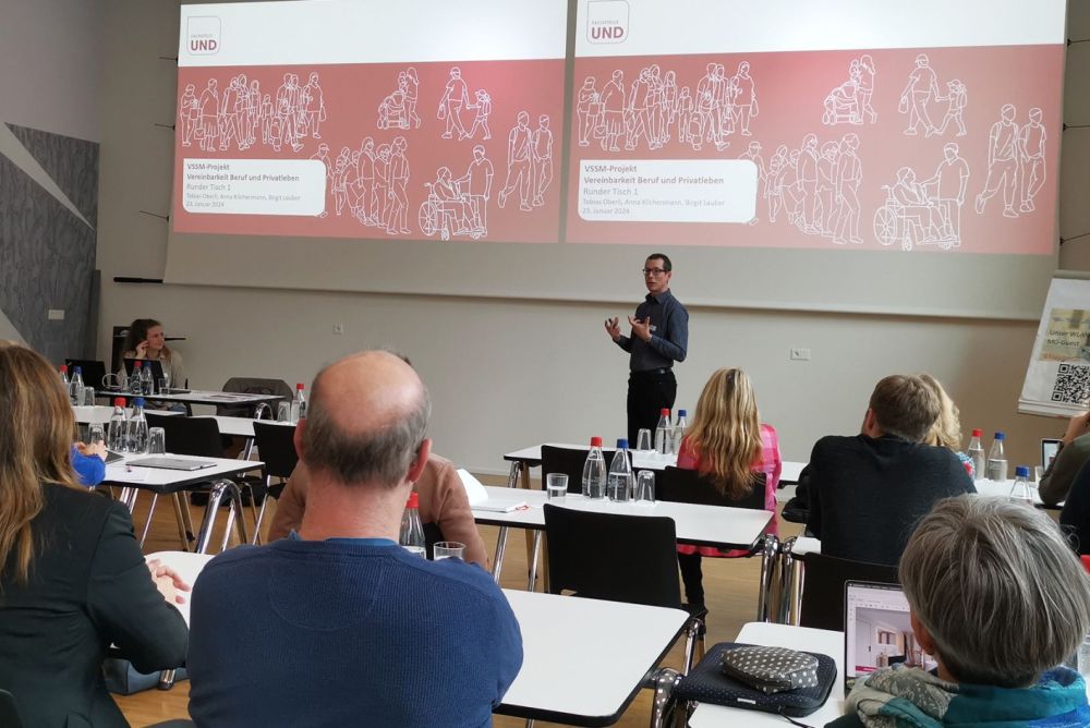16 Betriebe beteiligen sich am Pilotprojekt des VSSM und der Fachstelle UND zum Thema Vereinbarkeit von Beruf und Privatleben. In allen Unternehmen wurden Analysen und Mitarbeitendenbefragungen durchgeführt. Zur Halbzeit trafen sich die Beteiligten zum Runden Tisch in Wallisellen ZH.