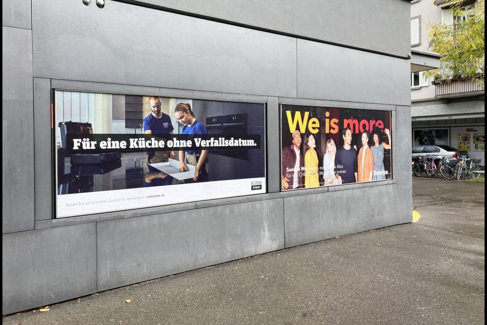 in Hoch- und Querformaten bestückt. Die Sujets und Slogans bilden den Start zu