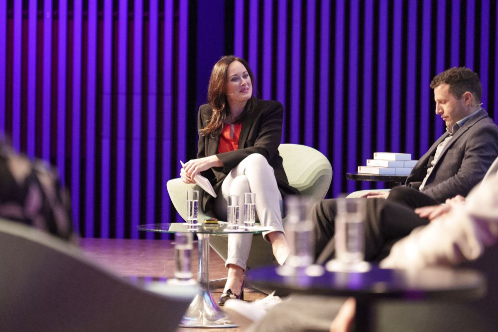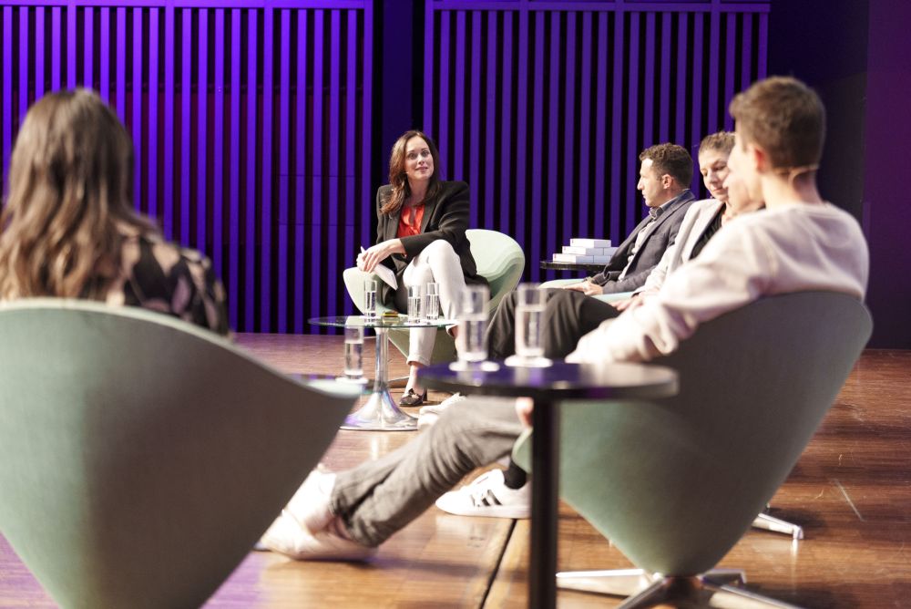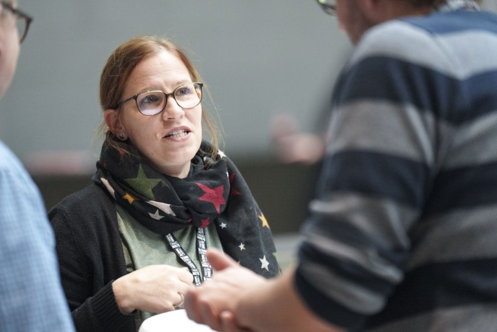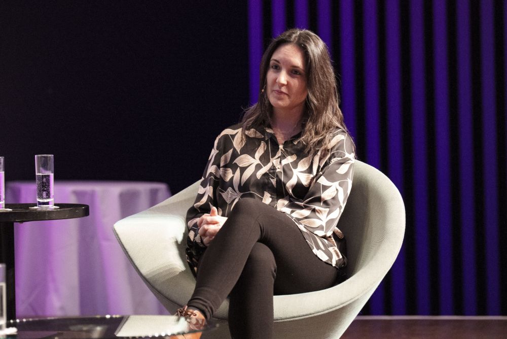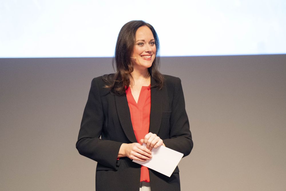 La moderatrice Tanja Gutmann presenta il programma del Forum Falegnami di Baden. Foto: Beat Baschung