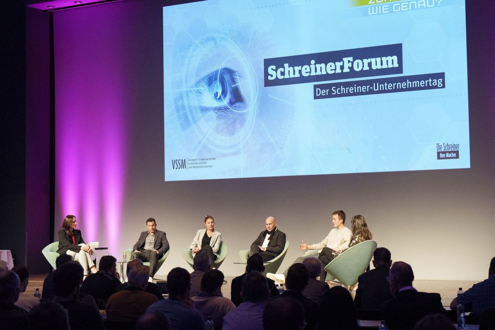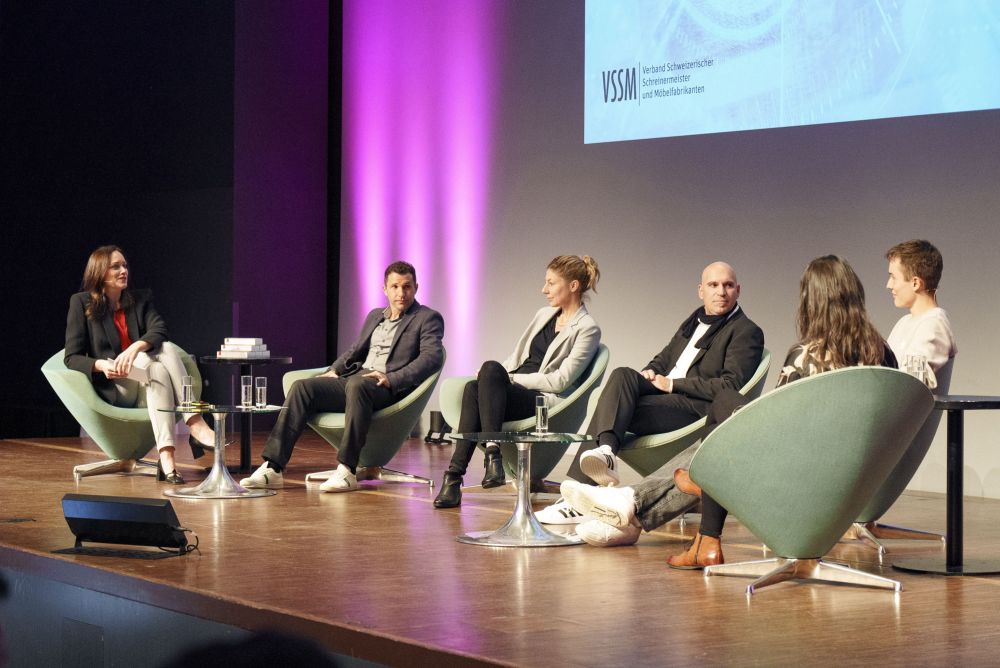 Nella tavola rotonda conclusiva, Barbara Büttner (Märki AG Innenausbau), Oliver Bantli (Schreinerei Holzbau Bantli AG), Mareike Ahlers (CEO Prof. Bruhn & Partner AG), Elia Wettstein (Schreinerei Fehlmann AG, membro della squadra nazionale skills 2022), e Basil Gasser (Gawo Gasser AG e membro del Consiglio centrale del VSSM), moderati da Tanja Gutmann, hanno cercato i modi per essere e rimanere attraenti per i dipendenti attuali e futuri. Nella sua introduzione, Tanja Gutmann ha affermato che, sebbene il termine "carenza di manodopera qualificata" non sia più cosi attuale, esso ha raggiunto anche il settore della falegnameria. Elia Wettstein ha sottolineato che i criteri chiave sono il team, la collaborazione e il piacere del lavoro.