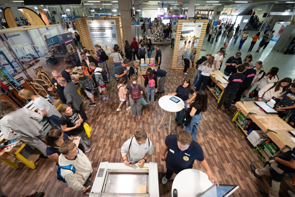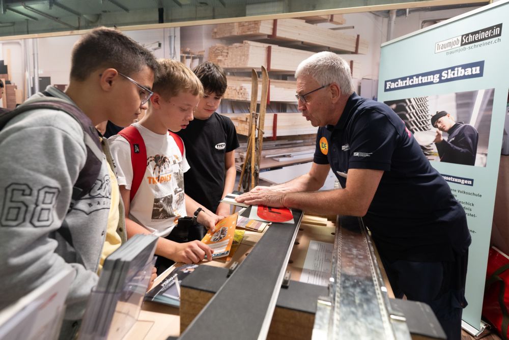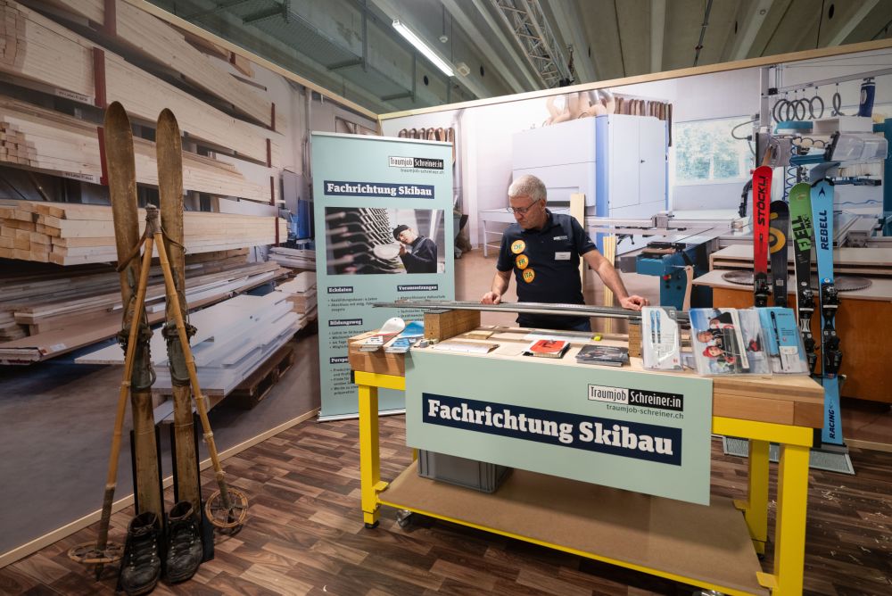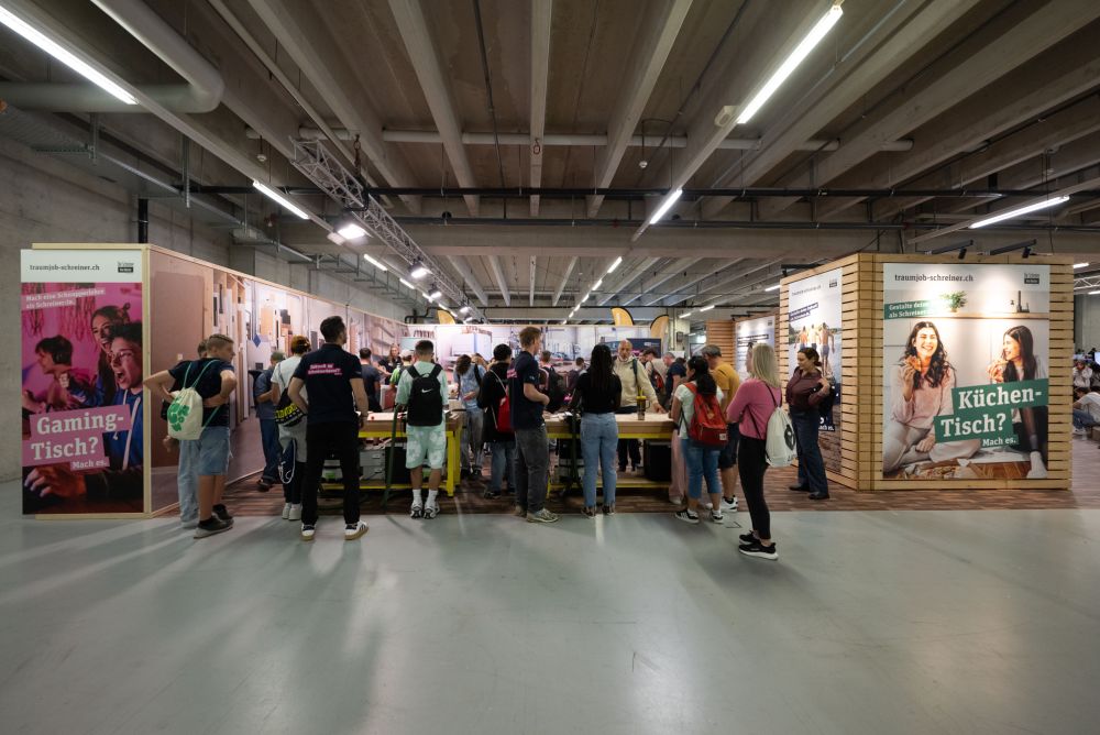 An den Swiss Skills fanden nicht nur Berufsmeisterschaften statt, sondern es präsentierten sich auch über 150 Berufsgattungen den Besucherinnen und Besuchern. An den Stand der Schreinerin beziehungsweise des Schreiners strömten viele Personen.
