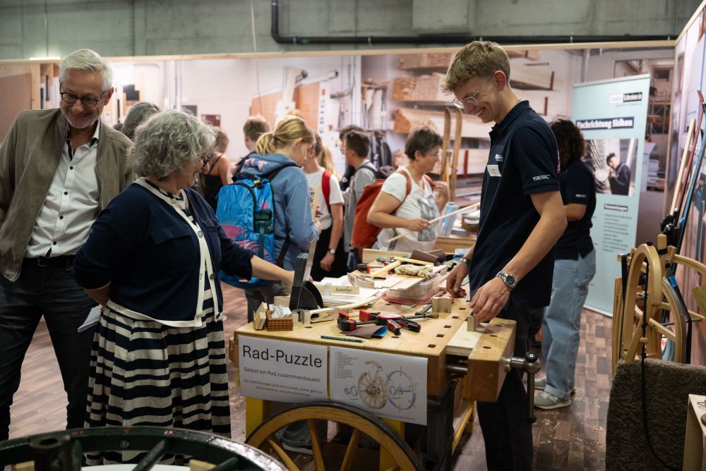 Der Beruf der Schreinerin beziehungsweise des Schreiners interessierte. Bis zu einer halben Stunde Geduld benötigten die Besuchenden phasenweise, wenn der Ansturm gross war. Wer wollte, konnte am Stand des Verbands Schweizerischer Schreinermeister und Möbelfabrikanten (VSSM) selbst ein Mühlespiel herstellen.