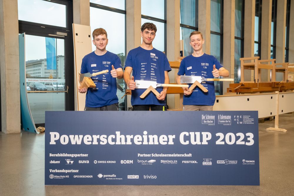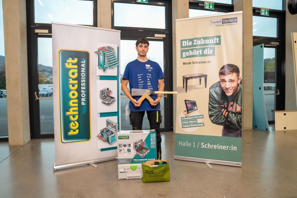 Sei giovani si sono poi affrontati in finale. Silvan Reichen di Frutigen BE è stato il primo ad arrivare al traguardo. Anche gli altri hanno dato il massimo. Michael Fuchs di Marbach LU ha ottenuto il maggior numero di punti. È il nuovo vincitore della Powerschreiner Cup. È al terzo anno di formazione presso la falegnameria Aeschlimann GmbH di Marbach. "Ho fatto un po' di pratica e ho realizzato alcuni oggetti", ha detto Fuchs. Dato che tutti avevano fatto un ottimo lavoro, sperava nel terzo posto ed è stato sorpreso dalla vittoria. "Lavorare davanti a un pubblico era una novità ed ero nervoso".
