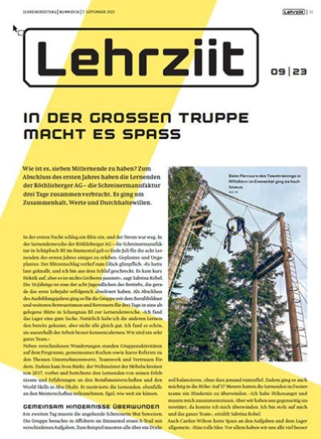 «Lehrziit» (un tempo standby) è una sezione della "SchreinerZeitung", che contiene argomenti speciali per gli allievi e viene pubblicato mensilmente. La "SchreinerZeitung" che contiene «Lehrziit» può essere richiesta gratuitamente dagli apprendisti.