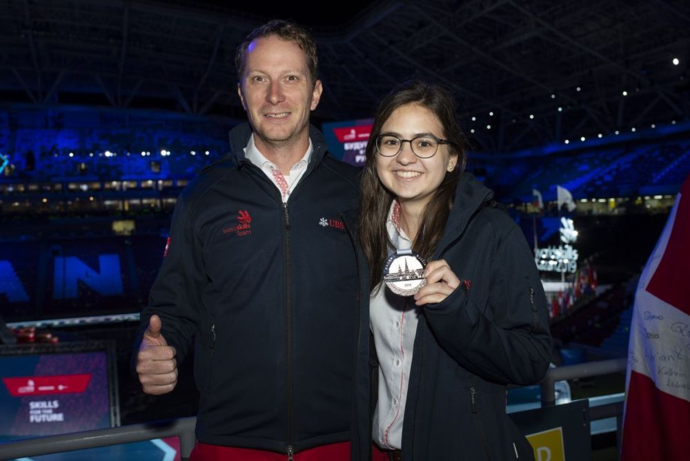 Samanta Kämpf wird Zweite, Jérémie Droz Dritter. Bilder: Swiss Skills